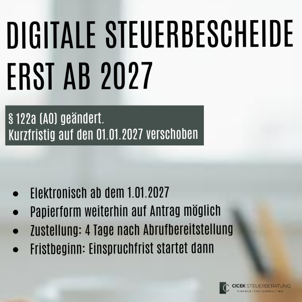 Digitale Steuerbescheide ab 2027: Wann gilt der Bescheid als zugestellt und die Frist beginnt?